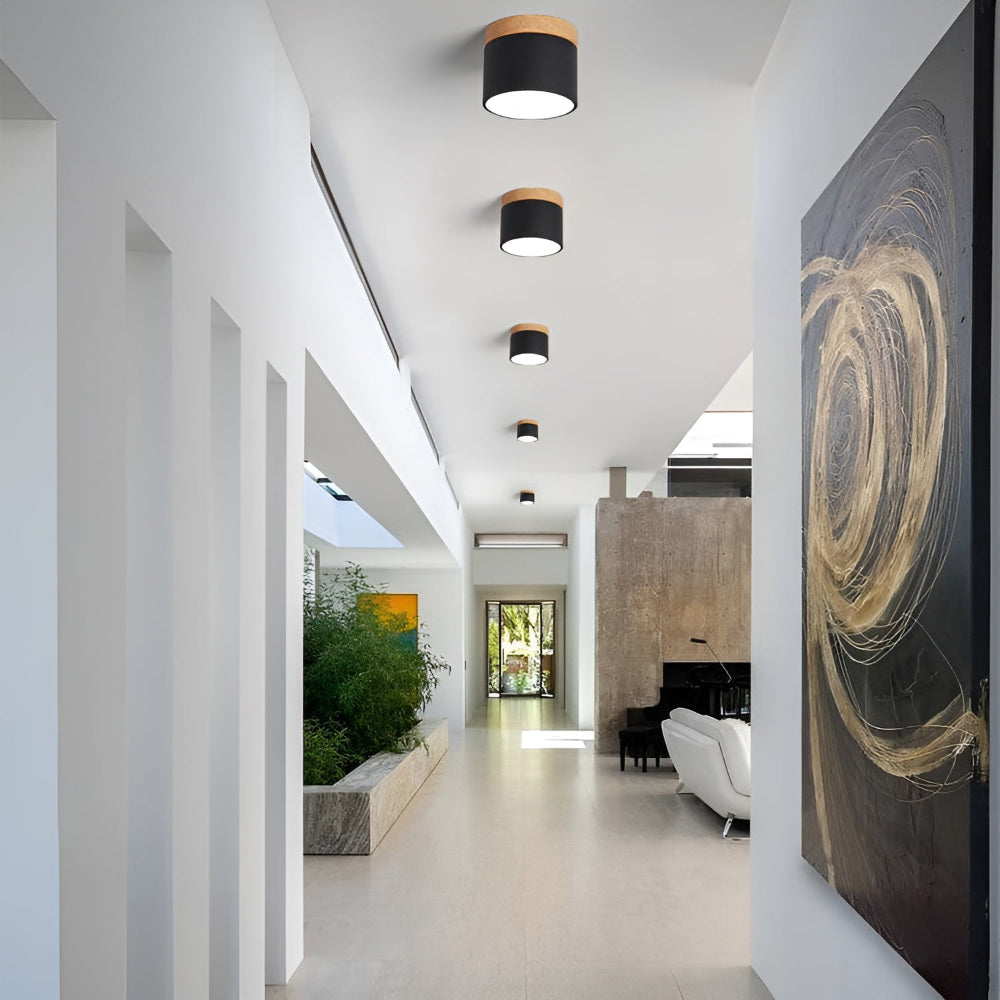 La Plafonnier Elyraze | LED Intégrée | Fer, Bois Massif & PVC Scandinave diffuse une lumière douce et agréable qui éclaire bien la pièce sans éblouir.