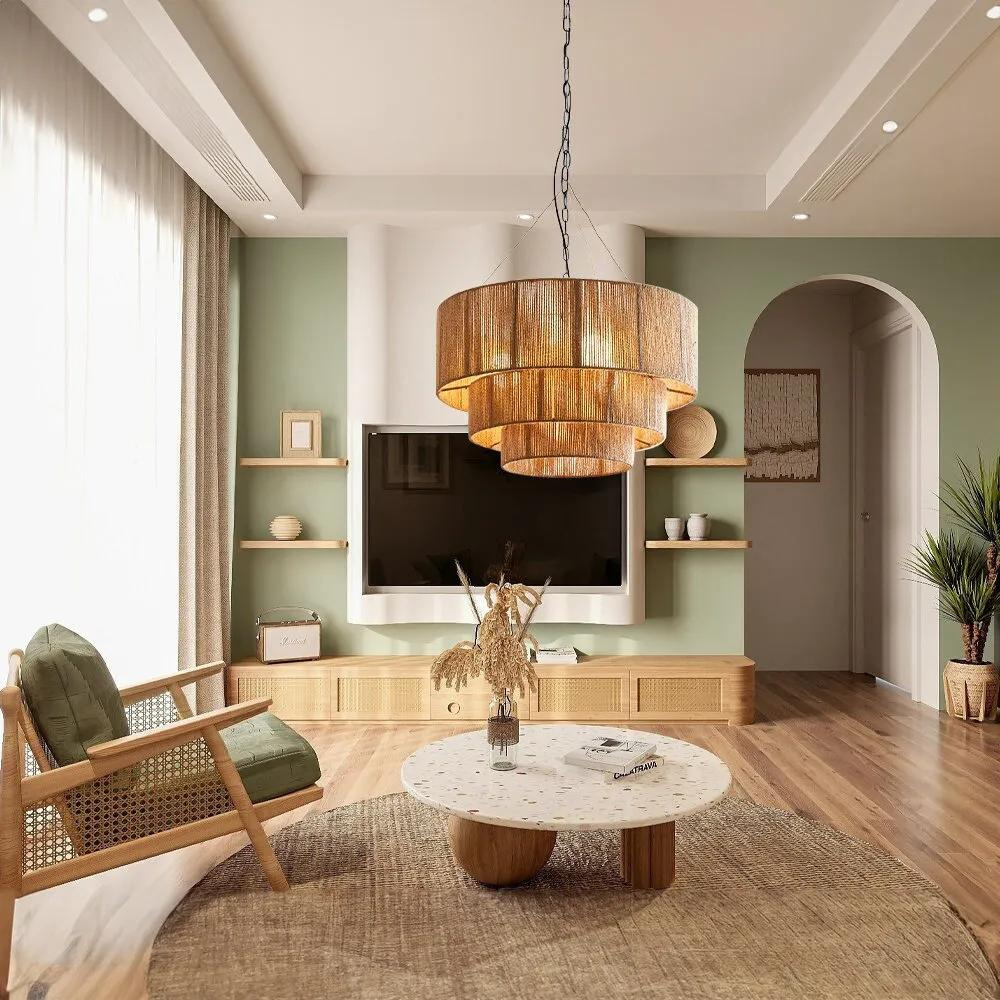La Suspension Hanéora | Douille E27 Chanvre Tressé Main | Bohème Réglable diffuse une lumière douce et agréable qui éclaire bien la pièce sans éblouir.