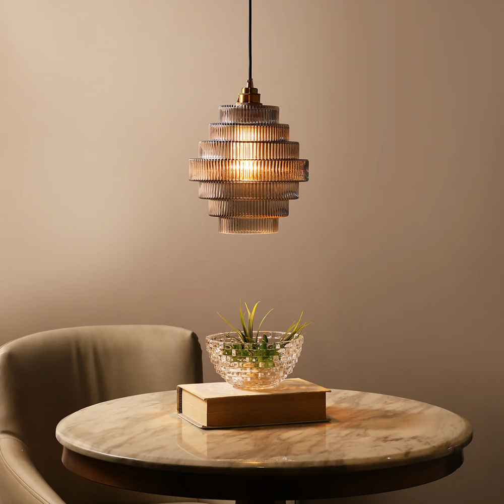 La Suspension Ormévia | Douille E27 Verre & Laiton Poli | Câble Réglable Style Rétro Chic diffuse une lumière douce et agréable qui éclaire bien la pièce sans éblouir.