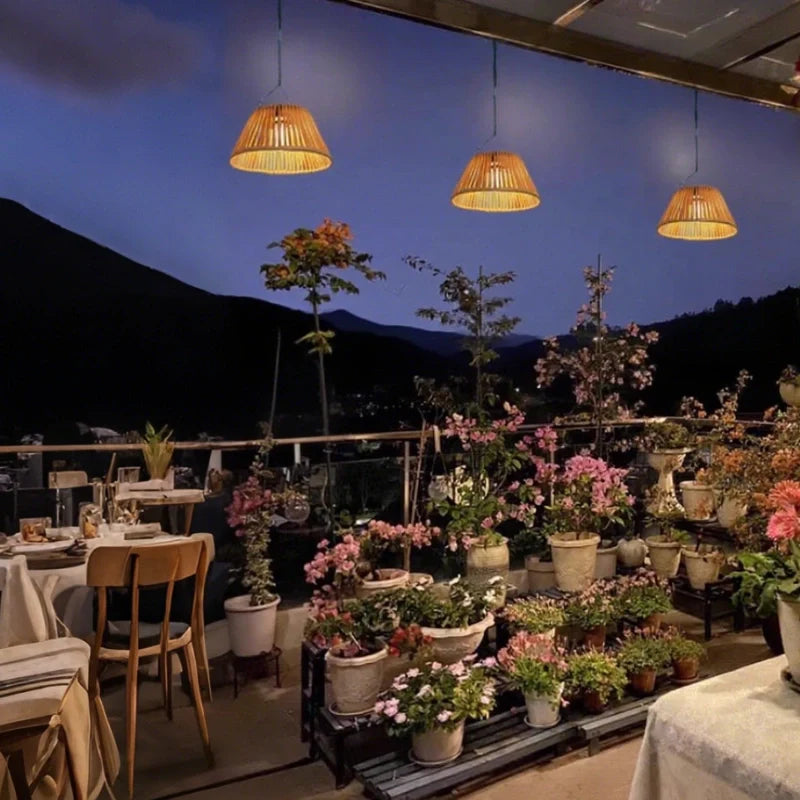 Die Solavine Laterne bringt harmonische Eleganz und warme Atmosphäre in Ihre Umgebung – ob auf der Terrasse, im Garten oder im Wohnraum. Ihr kunstvoll gewebtes Rattan-Design kombiniert natürliche Schönheit mit moderner Funktionalität und taucht jeden Ort in ein sanftes, einladendes Licht.
